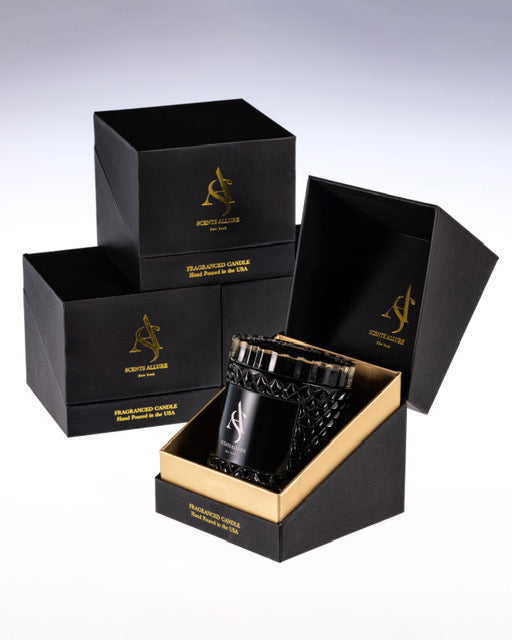Delight your loved ones with a perfectly packaged gift! You can either choose to have your candle delivered in a stylish complementary tin box or upgrade to a gorgeous Scents Allure branded gift box for a small service fee ($5 fee per box). A complimentary signature silk ribbon and tissue paper will be included with every order.